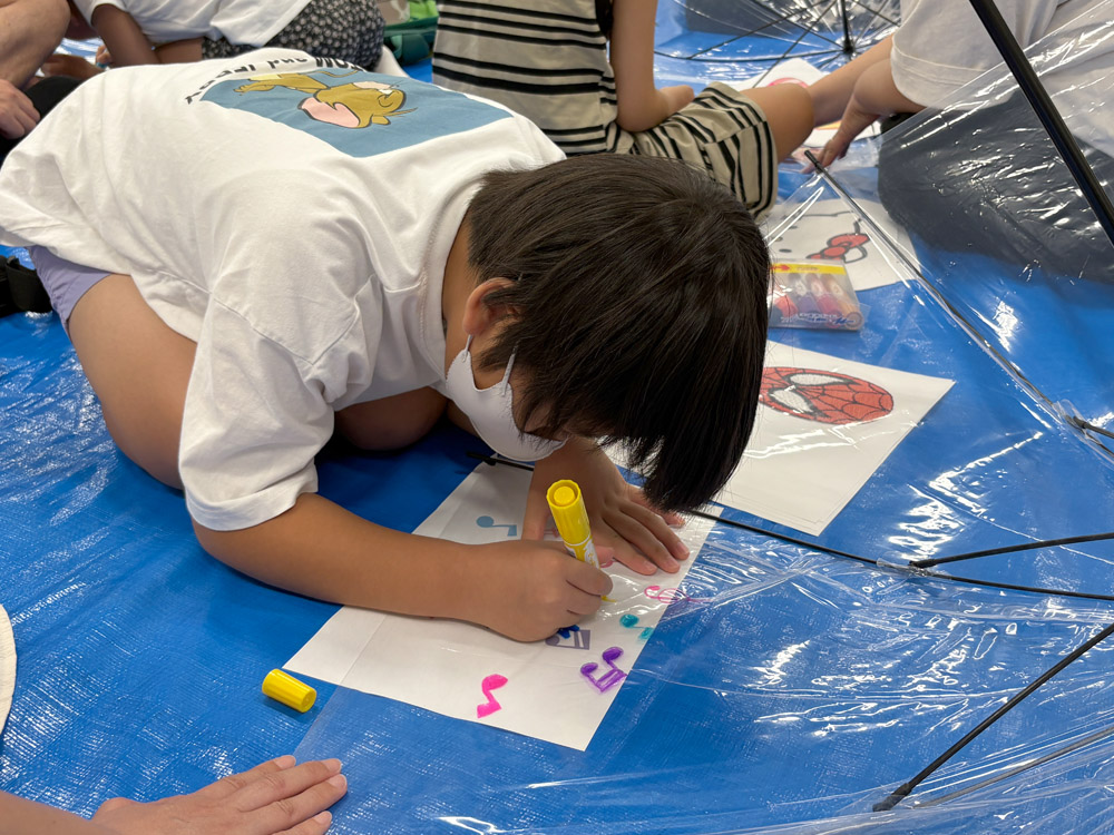 しかし、一度「イラスト」と「描く場所」が決まると、みんな真剣に、好きな色のペンを選んで黙々と描いていて、そのメリハリがとても印象的でした。