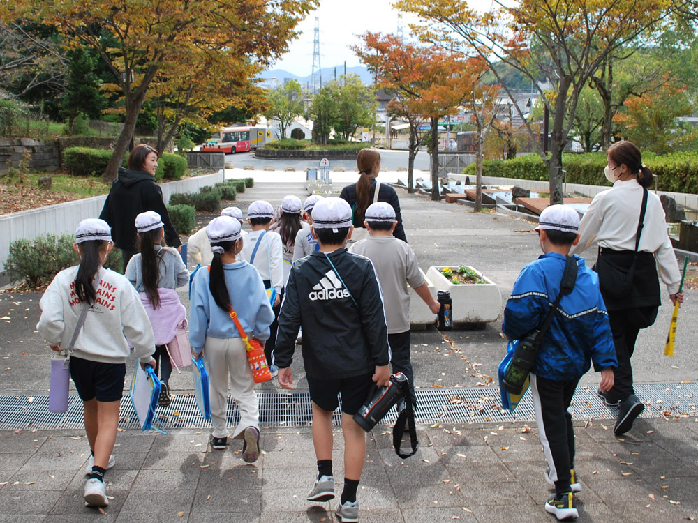 この校区探検は、地域の身近なお店や施設を見学したりお話を聞いたりしながら、地域の人々の工夫や取り組みに気付き、自分たちの生活と地域がつながっていることを学ぶことを目的としています。